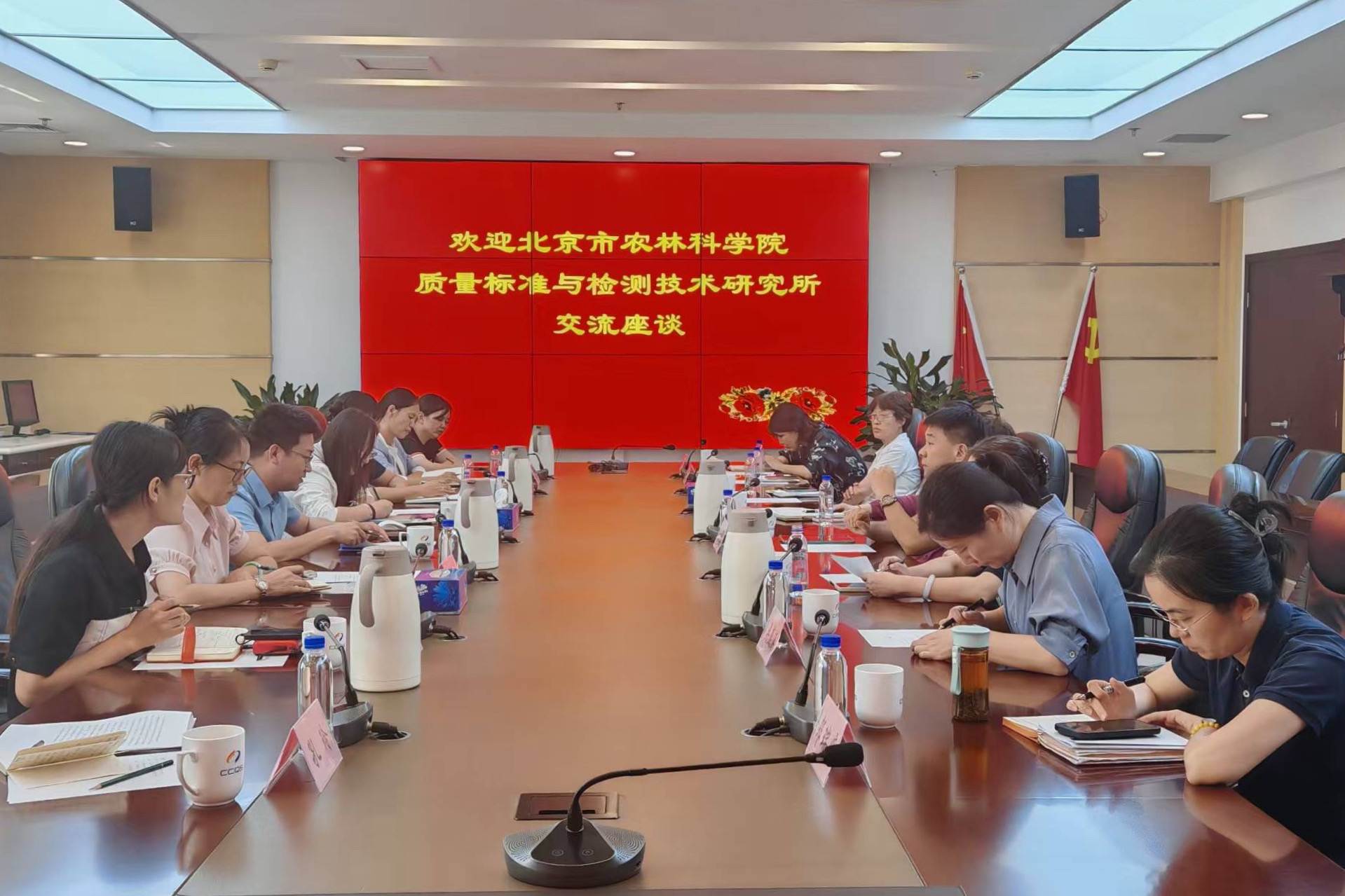 为进一步加强农业科研与食品检测领域的协同联动,积极拓展科研合作空间与成果转化渠道,9月9日,北京市农林科学院质标所李成副所长带队前往北京市食品检验研究院(北京市食品安全监控和风险评估中心)开展调研交流活动,质标所相关科研团队负责人及CMA体系核心成员共同参与此次交流,北京市食品检验研究院院长耿健强和副院长呙琴、谢翔燕以及相关部门负责人等参加座谈并陪同实地参观相关实验室。