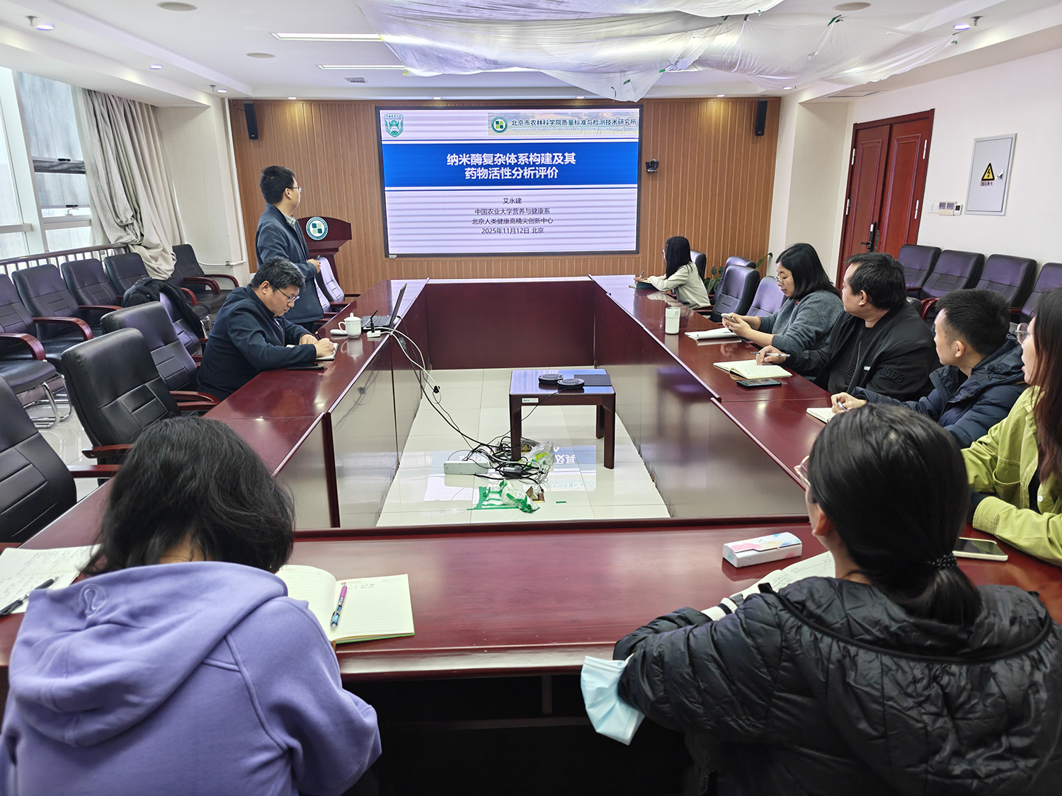 为进一步提升质标所农产品质量安全检测技术创新能力,促进青年人员与国内顶尖科研团队的青年学者开展学术交流。2025年11月12日上午,质标所邀请到中国农业大学营养与健康系艾永建研究员作题为《纳米酶复杂体系构建及其药物活性分析评价》学术报告。活动由质标所青工委主任委员翟文磊主持,20余名青年科研人员参加活动。